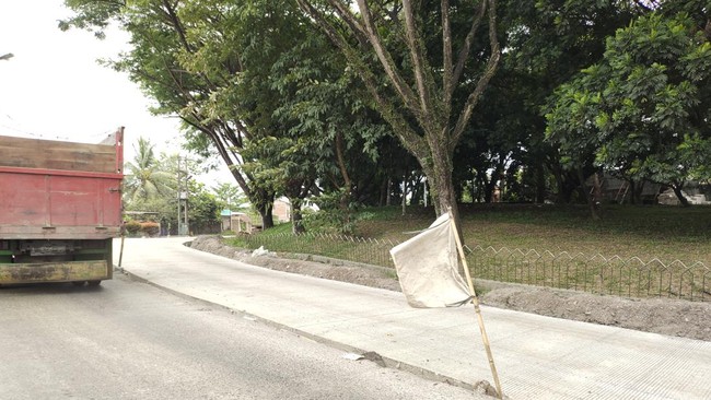 "Iya, jalannya lagi diperbaiki. Tadi ada alat berat, pekerjanya. Jalannya dicor gitu," kata Adi saat dimintai keterangan.