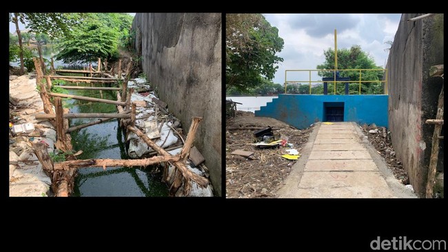 Ada 40 beton U-ditch yang terpasang dari depan perumahan warga hingga pintu air di Waduk Dogol. Sebelum dipasangi beton, saluran air itu hanya dipasangi karung pasir dan kerangka kayu sebagai tanggul penahan banjir.