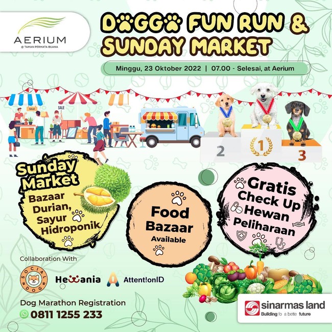 Doggo Fun Run terlaksana berkat kerja sama dengan Social Dog sebagai organizer lomba, Hewania sebagai partner klinik hewan dan Attention.id sebagai penyelenggara Sunday Market.