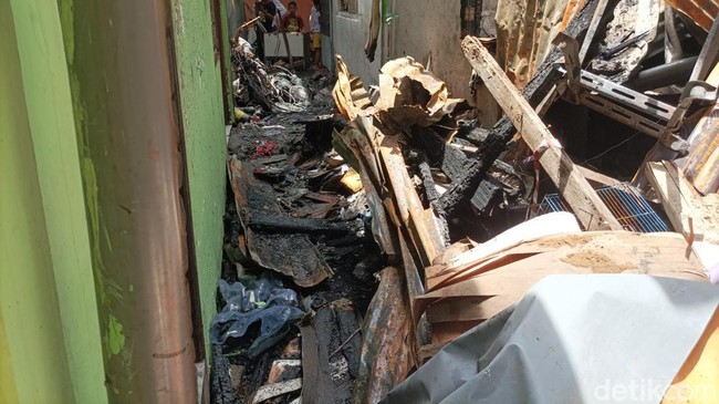 Pantauan detikcom di lokasi, Minggu (23/10), terlihat puing-puing genteng atap, asbes, dan sepeda motor yang hangus terbakar. Air bekas pemadaman semalam pun masih ada dan lokasi kebakaran pun cukup berlumpur dan bercampur abu.