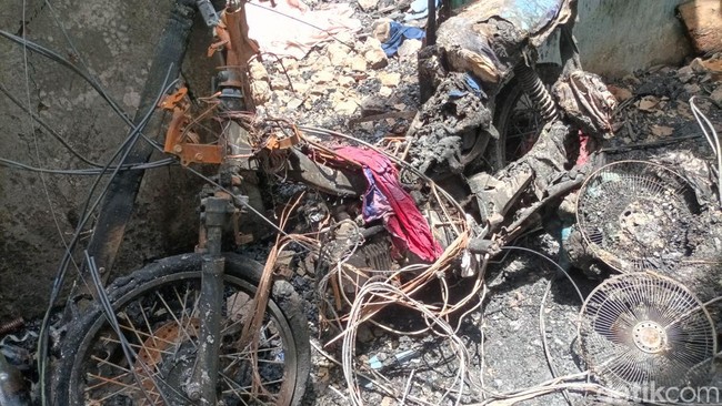 Terlihat barang berharga, seperti motor, juga hangus terbakar. Bau asap pun saat ini masih tercium di lokasi.