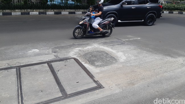 Praktis, sudah tiga kali lokasi di jalan ini ditambal. Sebulan lalu, Dinas Bina Marga DKI Jakarta dua kali menambal lubang jalan di titik ini. Perbaikan pertama kali dilakukan pada 6 September siang hari. Perbaikan pertama selesai pada hari itu juga.