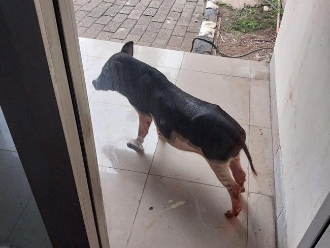 Dalam foto beserta rekaman video yang diterima, babi bercorak hitam putih itu tampak berlarian di pekarangan kantor. Tak hanya itu, babi juga masuk ke bagian dalam kantor.