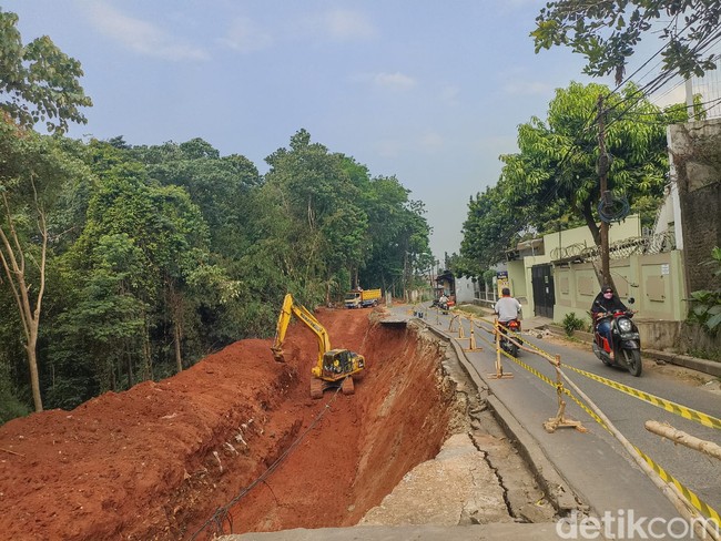 Jl Pangkalan 1A di Kecamatan Bantargebang sudah dua tahun belakangan longsor. Kini perbaikan sudah dimulai dan bakal rampung sebelum pergantian tahun.
