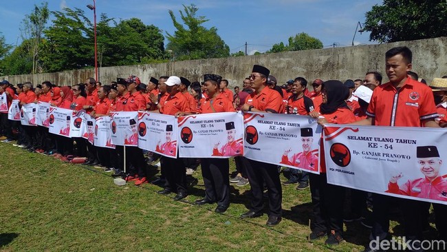 Instruksi tersebut diiringi dengan pembentangan poster bergambar Ganjar Pranowo. Poster tersebut bentangkan oleh kader yang berada di barisan terdepan. Dalam poster itu terdapat tulisan 'SELAMAT ULANG TAHUN KE -54 Bp. GANJAR PRANOWO (Gubernur Jawa Tengah)', serta logo PDIP.