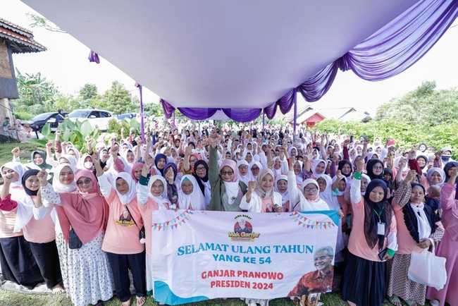 Kegiatan yang dihadiri 600 emak-emak itu tak hanya memperingati Hari Sumpah Pemuda saja, namun juga pada hari ini, Jumat (28/10) Ganjar Pranowo berulang tahun yang ke-56 tahun. Pemotongan tumpeng dilakukan untuk merayakan momen tersebut.