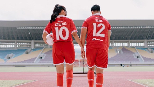 Kaesang terlihat mengenakan jersey berwarna merah dengan tulisan di punggung 'Erina' dengan angka 12. Sebaliknya, Erina mengenakan jersey dengan tulisan di punggung 'Kaesang' bernomor 10.