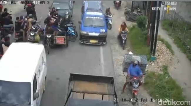 Aksi barbar puluhan siswa tersebut terjadi di Jalan Gagak Hitam, Kota Medan, pada Jumat (21/10). Momen itu terekam kamera CCTV milik Dishub Medan.