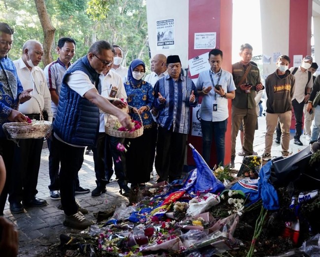 Dalam kunjungan tersebut, Mendag Zulhas didampingi Wakil Bupati Malang Didik Gatot Subroto. Mendag Zulhas turut menaburkan bunga serta mendoakan arwah para korban yang berada di pintu 13 stadion Kanjuruhan.