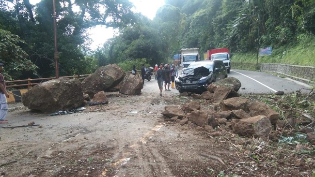 "Longsor yang terjadi membawa bebatuan dari tebing setinggi kurang lebih 50 meter," ungkap Hendrix kepada detikJabar di lokasi.