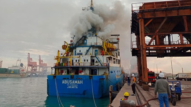 Kapal MV Abu Sama muatan pupuk terbakar di pelabuhan milik PT Krakatau Bandar Samudera (KBS), Cilegon. Seluruh ABK berhasil dievakuasi dan dinyatakan selamat.