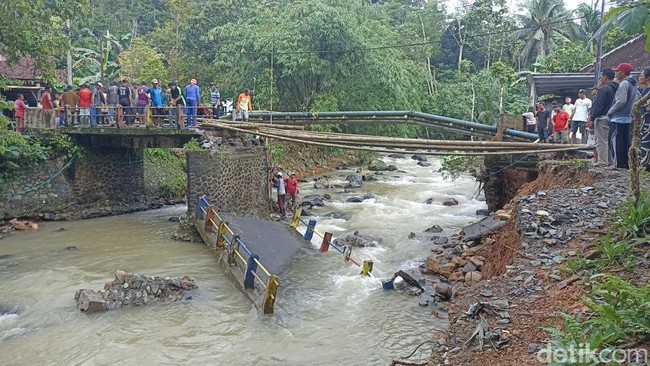 "Kejadian itu tadi malam, saat itu hujan lebat sehingga arus sungai cukup deras dan meluap. Kondisi itu menggerus konstruksi bawah jembatan," kata Sigit Waluyo, seperti dilansir detikJatim, Jumat (4/11/2022).