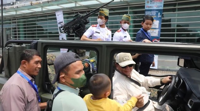 Prabowo terlihat beberapa kali menyusuri area pameran tersebut. Selang beberapa lama, Prabowo tampak meminta ajudannya untuk mengajak anak-anak yang berkunjung untuk ikut serta menaiki mobil tersebut.