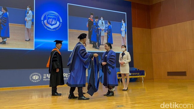 Puluhan mahasiswa Indonesia di Korsel juga turut menyaksikan seremoni penganugerahan Dr Hc kepada Puan. Wali Kota Busan Park Hyeyong Jun juga hadir ke PKNU.
