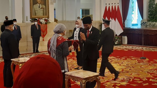 Presiden Joko Widodo (Jokowi) resmi menganugerahkan gelar pahlawan nasional ke lima tokoh yang dinilai berjasa bagi bangsa dan negara. Para ahli waris menerima secara simbolik anugerah gelar pahlawan nasional itu.