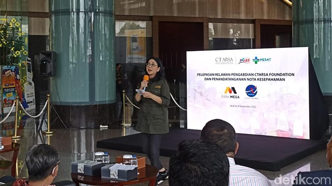 "Saya katakan bahwa kita tidak bisa--CT ARSA Foundation--sendirian. Kita harus berkolaborasi dengan banyak pihak. Kita harus memutus mata rantai kemiskinan sampai ke pelosok daerah dengan pendidikan yang berkualitas," ucap Founder CT ARSA Foundation, Anita Ratnasari Tanjung, di lobi Bank Mega, Jalan Kapten Tendean, Jakarta Selatan, Selasa (8/11/2022).
