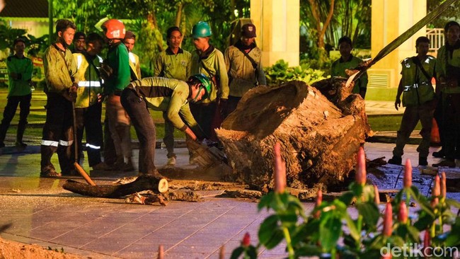 Pihaknya langsung memotong batang pohon tersebut untuk dibawa ke Dinas Kehutanan. "Pohon trembesi diameternya besar. Dari itu keliatan tuh. Itu kita potong-potong eksekusi. Diamanin untuk barang bukti ke Dinas Kehutanan yang keropos itu," ujarnya.