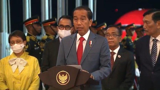"Saya dan delegasi baru saja tiba dari Kamboja. Serah terima ketua ASEAN tahun 2023 telah dilakukan hari ini," kata Jokowi dalam pernyataan pers usai tiba di Bali, Minggu (13/11/2022).