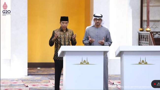 Sebelumnya, Mohammed bin Zayed Al Nahyan tiba di Solo untuk menyusul para pemimpin negara lainnya untuk mengikuti Konferensi Tingkat Tinggi (KTT) G20 dan meresmikan Masjid Raya Sheikh Zayed Al-Nahyan. Kedatangan Mohammad bin Zayed Al Nahya disambut langsung oleh Presiden Indonesia Joko Widodo (Jokowi).