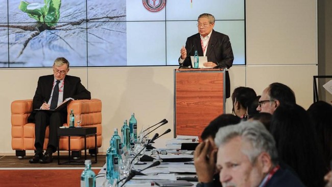 "Sebuah krisis ekonomi, yang kerap terjadi di dunia, juga ada jalan untuk menstabilkan dan memulihkan kembali. Tetapi, jika kenaikan suhu global menembus angka 4 derajat dari suhu era pra-industri, maka di akhir abad 21 ini 'kiamatlah' dunia kita," kata SBY. SBY menyebut Tiongkok dan Amerika Serikat merupakan penyumbang emisi karbon terbesar di dunia yang menyebabkan bumi makin panas.