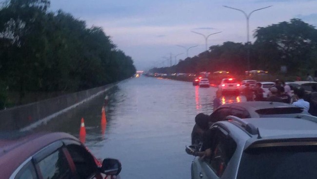 "Genangan di Ruas Tol Jakarta-Tangerang terjadi akibat curah hujan yang tinggi pada Minggu 13 November 2022, serta tingginya debit air Sungai Sabi dan Sungai Cisadane, sehingga limpasan air memasuki badan jalan," jelasnya.