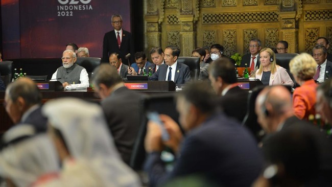 Hal itu disampaikan Jokowi dalam pembukaan KTT G20 di Bali, Selasa (15/11/2022). Para pemimpin dunia hadir langsung di lokasi tersebut, mulai Presiden Amerika Joe Biden hingga Presiden China Xi Jinping.
