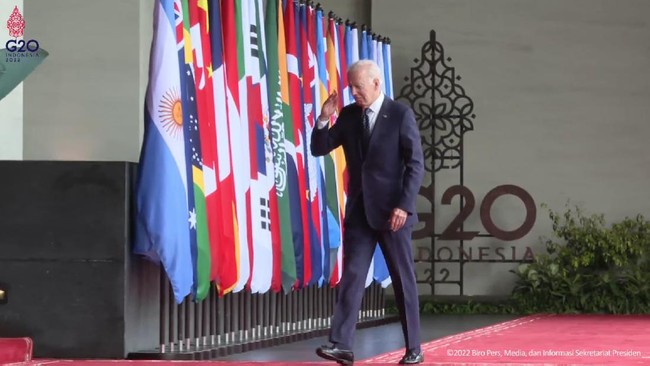 Dilihat dari tayangan kanal YouTube Sekretariat Presiden, Selasa (15/11/2022), Biden mulanya tampak berjalan ke dalam venue KTT G20 di The Apurva Kempinski, Bali, setelah turun dari mobil. Di area venue, Jokowi sudah menunggu kedatangan Biden.