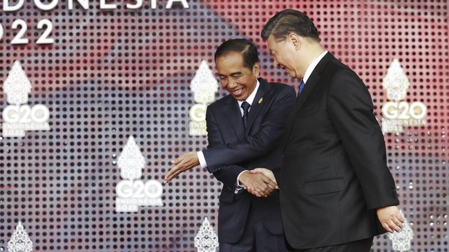 Presiden Joko Widodo (Jokowi) menyambut dengan penuh senyum saat para pemimpin dunia tiba di venue utama Konferensi Tingkat Tinggi (KTT) G20. Jokowi menyapa para pemimpin dunia sambil berfoto bersama di area penyambutan berlatar tiga lidah api.