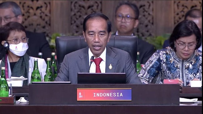 Presiden Joko Widodo (Jokowi) membuka sesi III Konferensi Tingkat Tinggi (KTT) G20 Bali. Jokowi kembali menyerukan agar perang dihentikan.