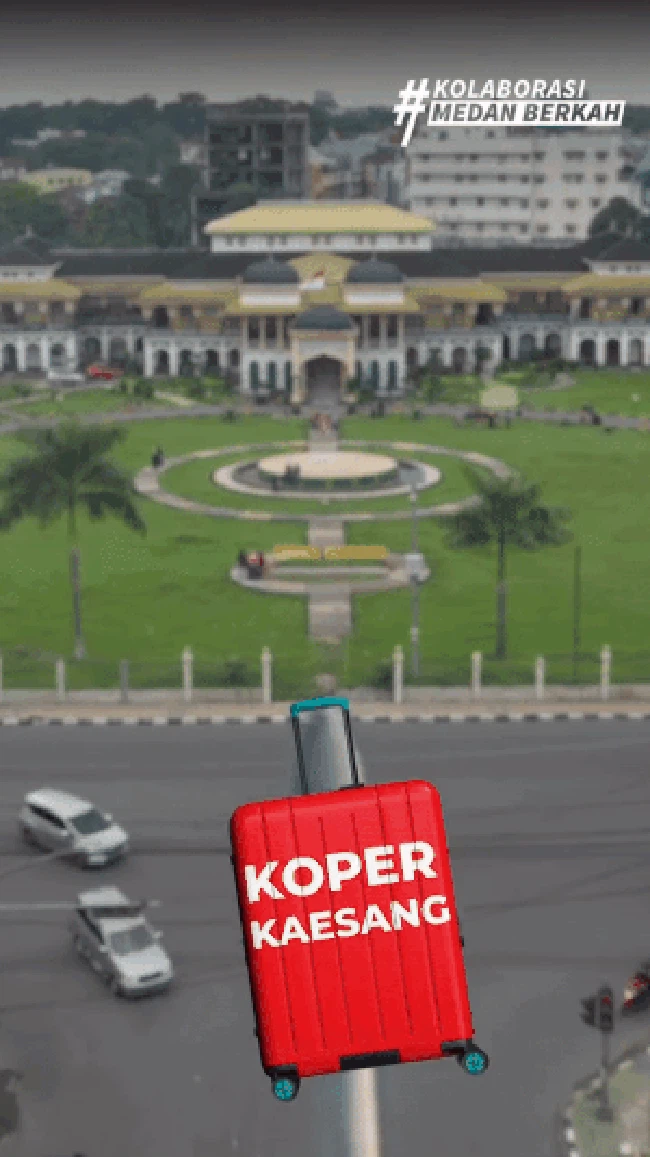 Koper itu seolah-olah terbang dari Istana Maimun yang menjadi salah satu landmark Kota Medan. Koper lalu terbang di angkasa, melintasi tentara Ukraina dan Rusia, hingga melewati Holywood sign yang menjadi landmark Los Angeles, California, Amerika Serikat (AS).