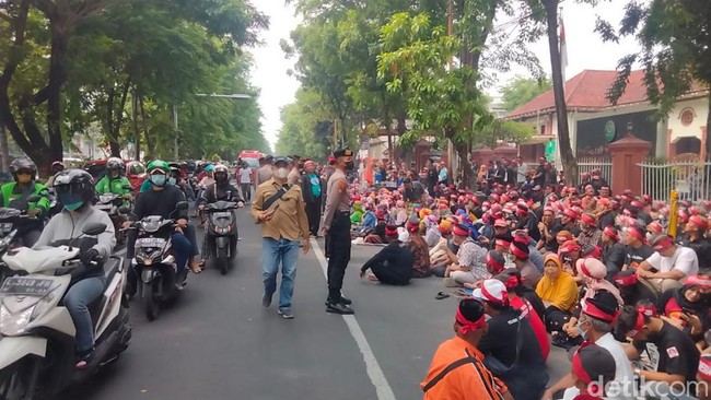 Arus lalu lintas macet dua arah dampak aksi massa mengatasnamakan Persaudaraan Cinta Tanah Air Indonesia di Jatim tersebut. Arus lalin dari arah sebaliknya macet sekitar 200-300 meter ke arah Jalan Diponegoro.
