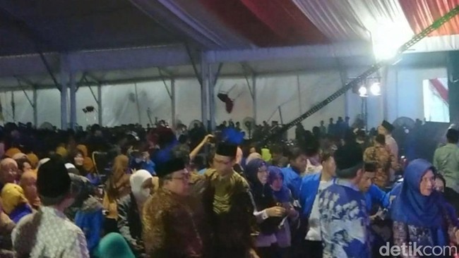 Wamenag langsung menghentikan sambutan. Pejabat yang hadir seperti Wakil Ketua DPR Muhaimin Iskandar, Bupati Tulungagung Maryoto Birowo, Bupati Lumajang Thoriqul Haq turut mengamankan diri.