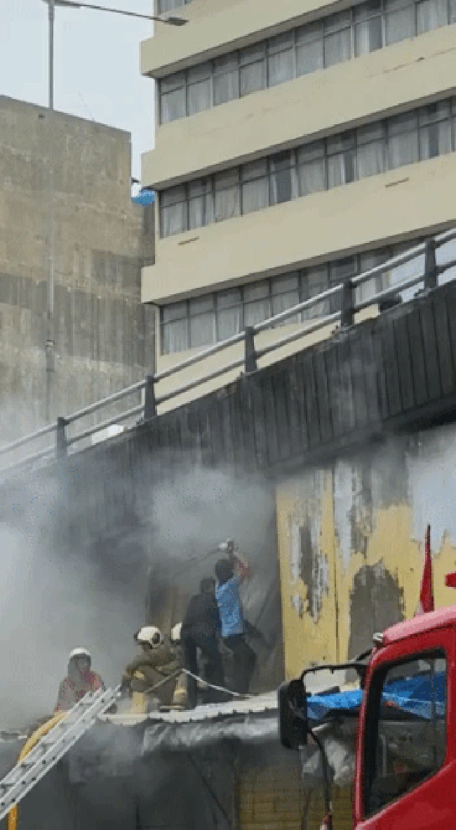 Titik kebakaran diketahui berada di bagian kios samping flyover. Sebagian warga ada yang membantu memadamkan api. Para pedagang juga ada yang menyelamatkan barang-barang jualan mereka.