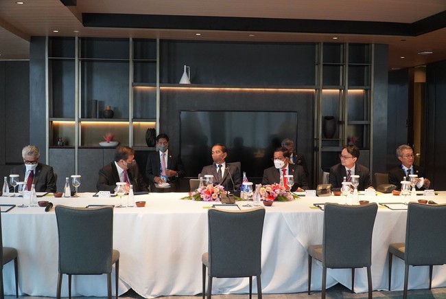 Turut hadir mendampingi Presiden Joko Widodo dalam pertemuan ini yakni Menteri Koordinator Bidang Perekonomian Airlangga Hartarto, Sekretaris Kabinet Pramono Anung, dan Wakil Menteri Perdagangan Jerry Sambuaga, serta Direktur Jenderal Asia Pasifik dan Afrika Kemenlu dawn Duta Besar Republik Indonesia untuk Kerajaan Thailand.
