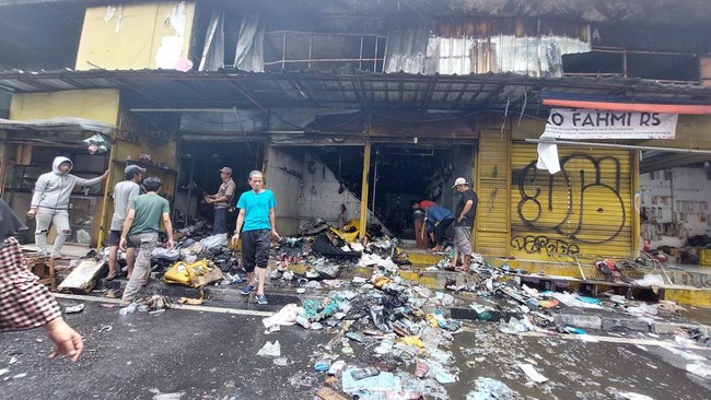 Dari pantauan detikcom pukul 14.20 WIB, Jumat (18/11/2022), kondisi kios-kios yang sebelumnya terbakar tampak berantakan. Asap yang sebelumnya membubung tidak tampak lagi karena per pukul 13.50 WIB api sudah bisa dipadamkan.