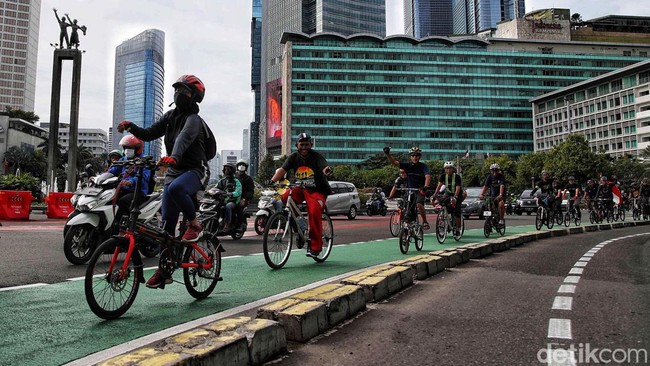 "Ya manfaatnya (jalur sepeda) bukan hanya buat berolahraga, tapi juga kita buat mengurangi polusi sehingga masyarakat yang tadinya berkendaraan motor bisa pakai sepeda dalam melaksanakan tugas, kerja mereka, aktivitas sehari-hari," imbuhnya.