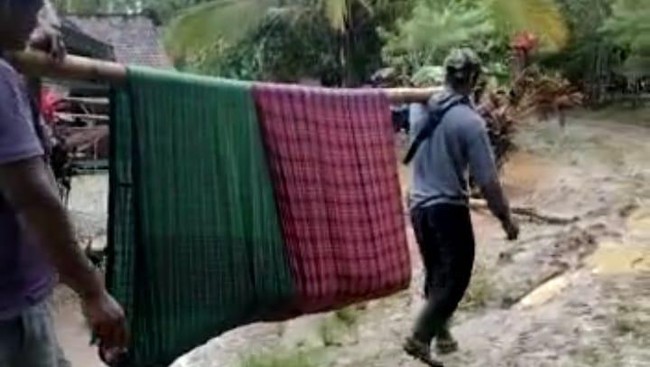 "Saya tandu kurang lebih perjalanan kurang lebih 3 kilometer, karena memang kondisi jalan belum bisa dilalui oleh mobil sehingga kami bersama keluarga menandu," katanya.