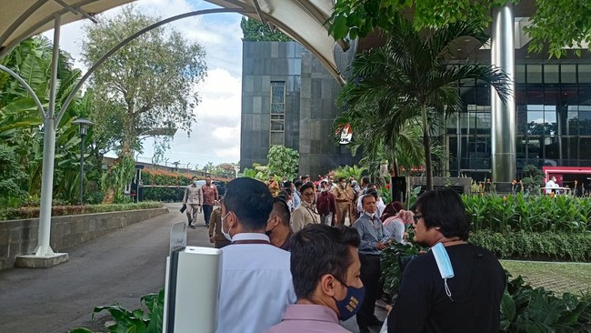 Pantauan detikcom di lokasi, pukul 13.25 WIB, Senin (21/11/2022), sejumlah karyawan KPK berhamburan keluar dari gedung. Mereka memenuhi halaman luar gedung KPK.
