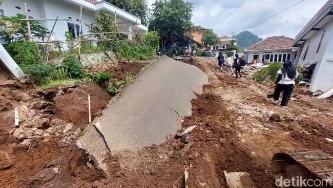 "Jalannya rusak karena gempa, sekarang tidak bisa dilalui dulu sama motor, apalagi sama mobil," ujar Ujang, warga setempat, kepada detikJabar, Rabu (23/11/2022).