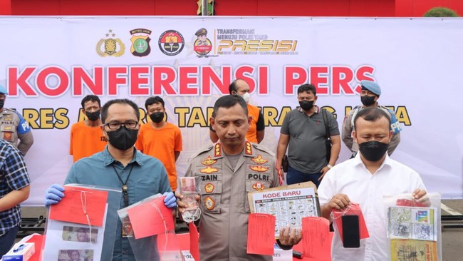 "Peran ketiga orang tersangka kita ketahui sebagai pengepul. Mereka kita amankan bersama barang bukti uang hasil pemasangan judi, handphone, buku tafsir dan papan tulis," kata Kapolres Metro Tangerang Kota, Kombes Zain Dwi Nugroho, Kamis (24/11/2022).
