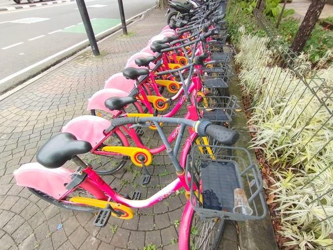 Terdapat sepeda yang tidak memiliki jok sepeda lagi. Beberapa keranjang sepeda juga dipenuhi sampah plastik dan daun kering. Besi pada sepeda juga terlihat sudah berkarat.