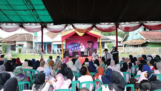 Sejumlah perempuan muda yang tergabung dalam Srikandi Ganjar Banten mengadakan aksi sosial pembagian sembako kepada warga di Kampung Katomas, Kabupaten Tangerang, Banten, hari ini. Pada kesempatan itu, sekitar 500 paket sembako dibagikan kepada masyarakat.
