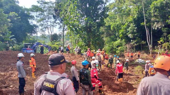 "Tim sejak pagi sudah bergerak ke lokasi di mana diperoleh keterangan bahwa korban terakhir bergelantung di pohon untuk minta tolong, namun tetap terbawa pergeseran tanah," kata Dedi dalam keterangannya, Senin (28/11/2022).