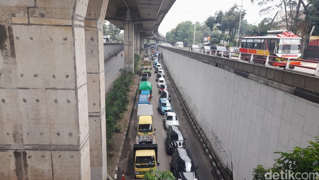 Kendaraan dari arah Simpang Tol BORR tampak mengular panjang hingga melewati underpass Jl Sholis. Sedangkan kendaraan dari arah Simpang Yasmin menuju Simpang Tol BORR mengular panjang hingga Mal Bogor Square.