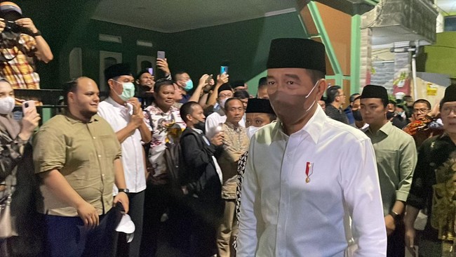 Jokowi tiba di rumah duka di Jalan Anggrek Cendrawasih IX, Palmerah, Jakarta Barat, Jumat (2/12/2022), pukul 18.59 WIB. Setibanya, Jokowi langsung masuk ke rumah duka. Dia tampak menyalami sejumlah orang yang berada di teras rumah duka.