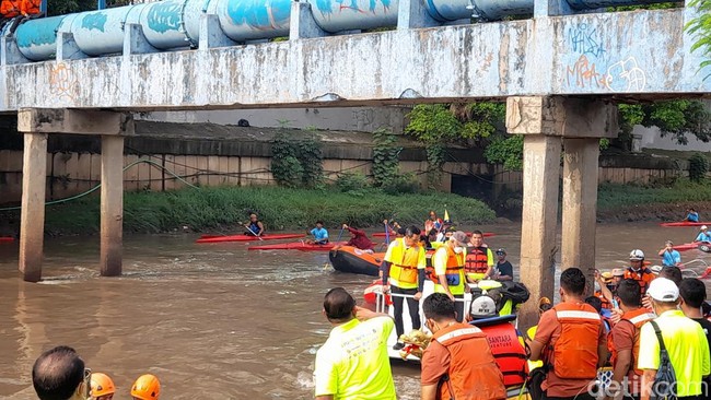 Pantauan detikcom di lokasi pada Minggu (4/12/2022), Basuki dan Heru Budi memulai start dari Pasar Rumput, Jakarta Selatan. Kemudian, keduanya menaiki perahu menyusuri Sungai Ciliwung di sekitar kawasan tersebut.
