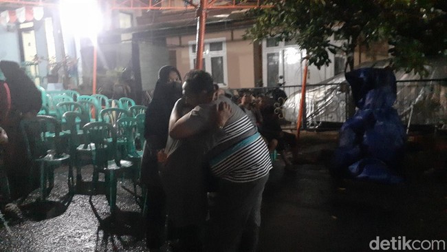 Tak sedikit dari warga yang datang itu menangis tersimpuh saat bertemu warga yang menyambut mereka. Isak tangis pun bisa terlihat sepanjang jalan mulai dari parkir hingga tenda duka itu.