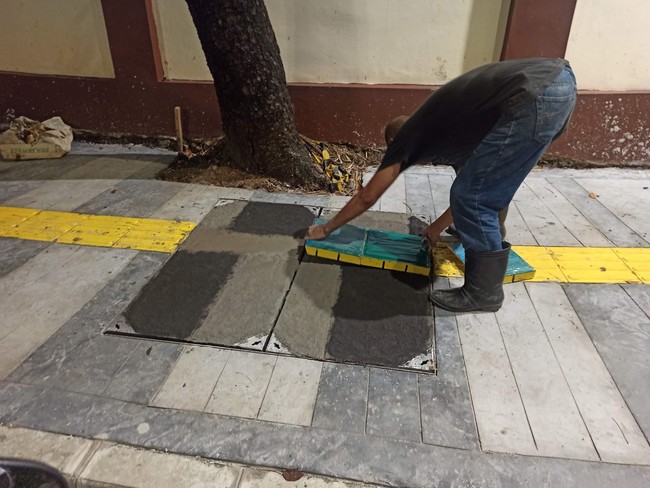 Tak hanya beberapa, tapi juga ada ratusan lubang yang sudah ditutup di trotoar kawasan ini. "Ada 150 titik," ujar Agustio.