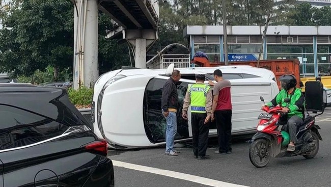 Sebuah mobil dilaporkan mengalami kecelakaan lalu lintas tunggal di Tanjung Duren, Jakarta Barat (Jakbar). Sopir mobil itu dilaporkan sempat banting setir hingga oleng dan mobilnya terbalik.