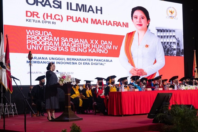 Hal ini disampaikan Puan dalam Orasi Ilmiah di acara Wisuda Program Sarjana dan Program Magister IV Tahun Akademik 2021/2022 Universitas Bung Karno pada Rabu (30/11) di Jakarta.